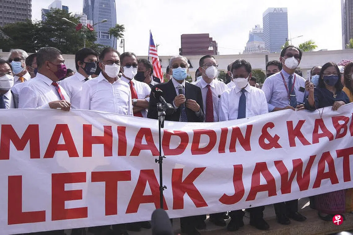 (早报讯)马来西亚前首相马哈迪与国会反对党领袖安华今天(8月2日)摒弃前嫌,参与反首相慕尤丁集会,并呼吁违反议会民主和侮辱国家元首谕令的慕尤丁及全体内阁成员体面地总辞。