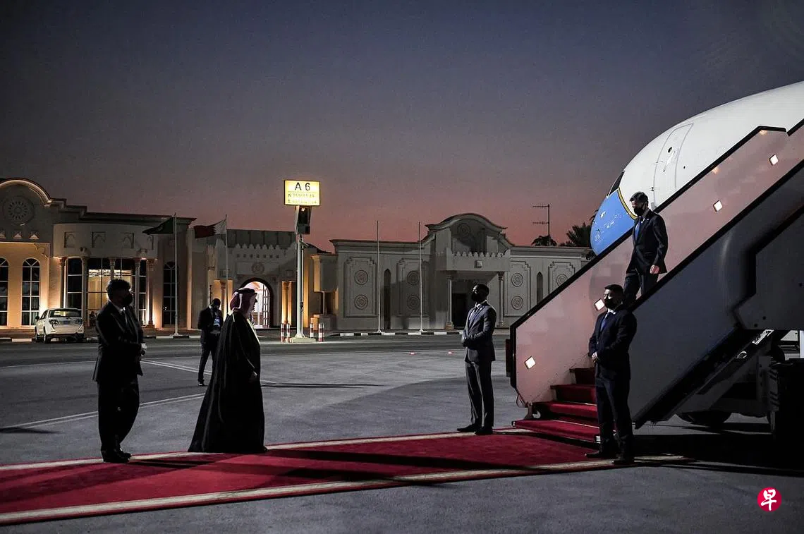 (早报讯)美国国务卿布林肯周一(9月6日)抵达卡塔尔访问,商讨阿富汗局势。