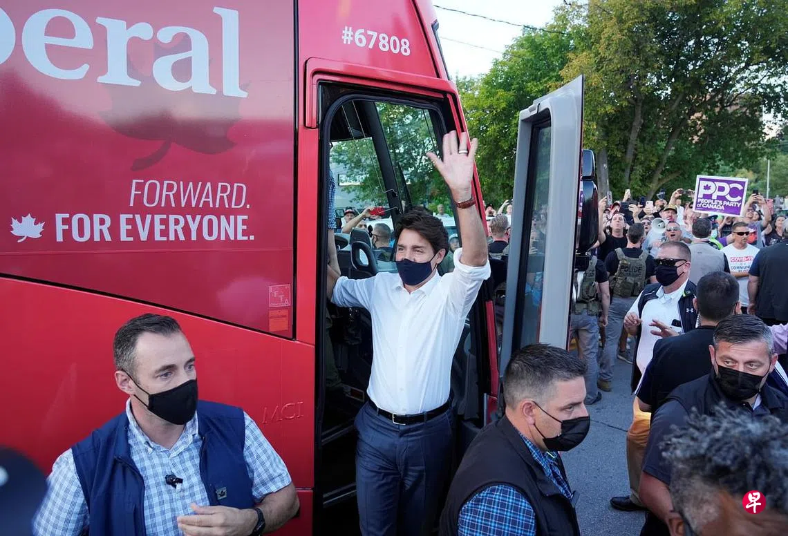 (早报讯)加拿大总理特鲁多周一(6日)在安大略省伦敦市登上一辆竞选巴士时被抗议者扔碎石击中。