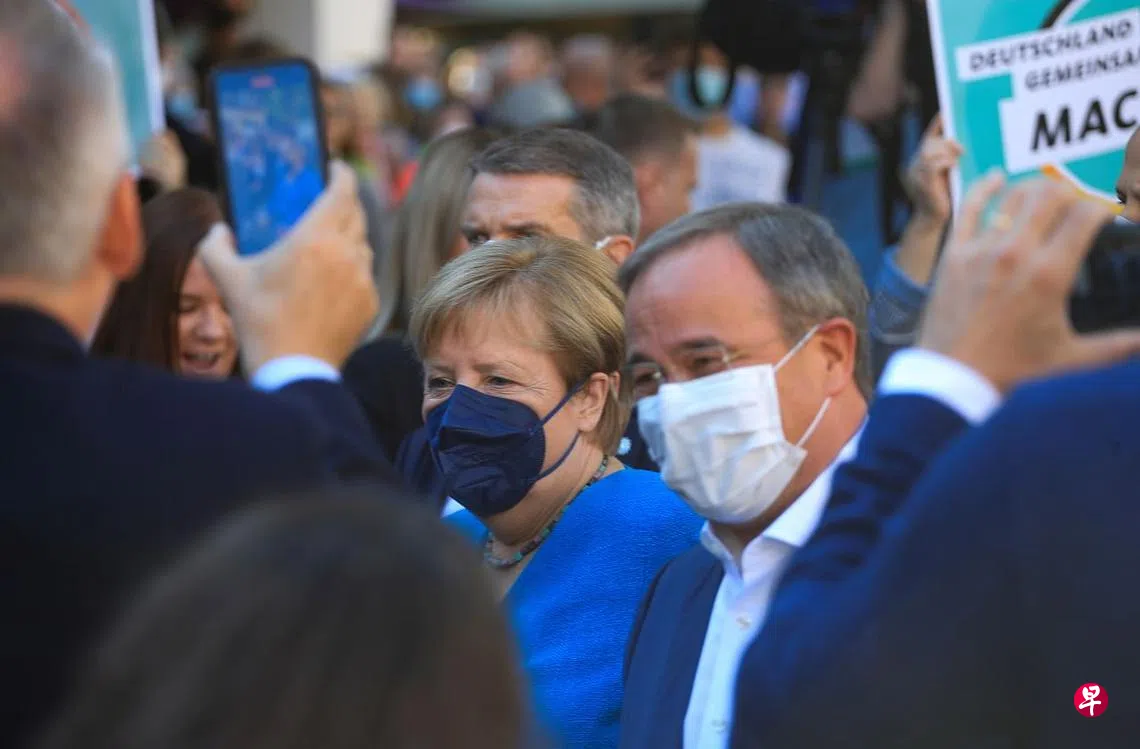 执政近16年、准备交棒的德国总理默克尔,在选前一天再次为联盟党(基民盟/基社盟)推举的总理候选人拉舍特催票。