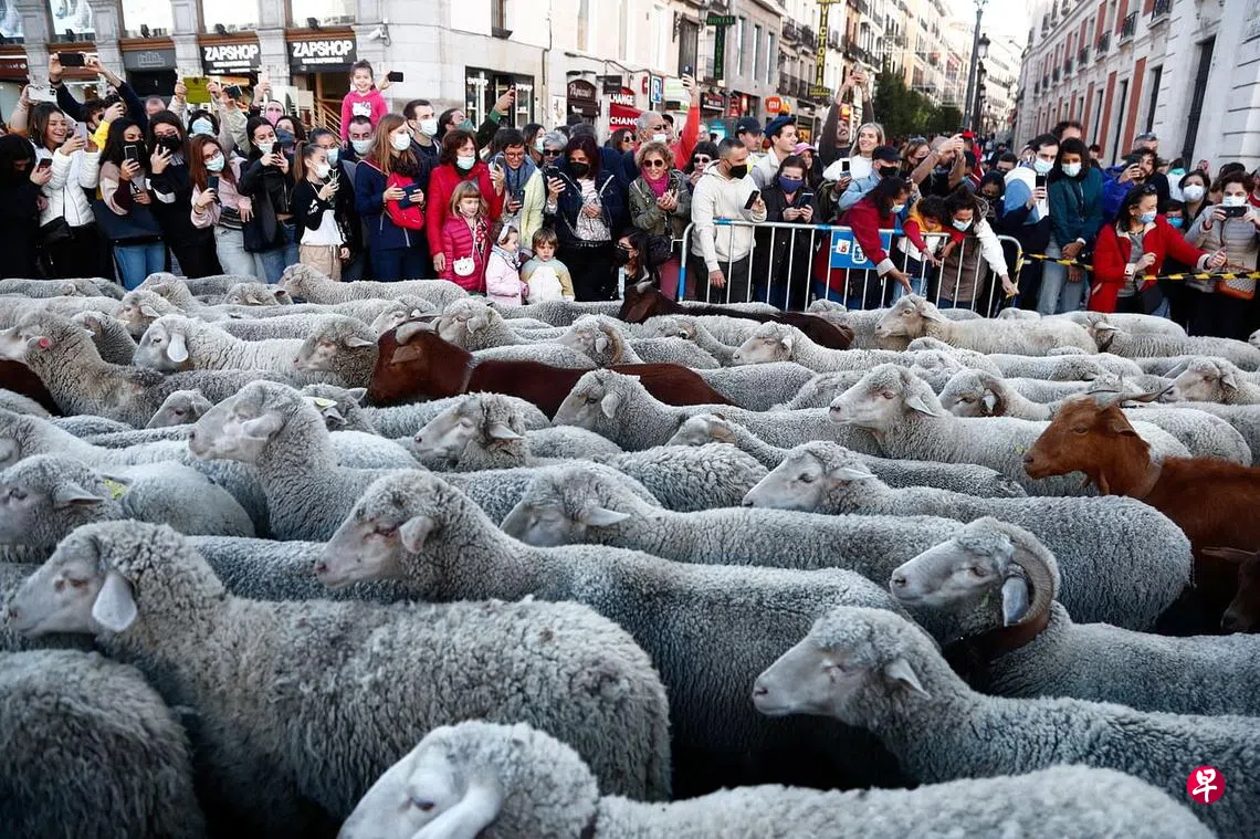 (早报讯)去年因冠病疫情被取消的年度传统西班牙“迁徙放牧节”周日(24日)重返首都马德里,街道上再次充满了羊群和叮叮当当声响。
