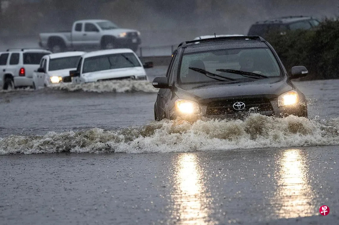 (早报讯)一股强大风暴星期天(24日)吹袭日前刚发生林火的美国加利福尼亚州北部,引发泥石流并导致许多电线杆倒下。这股“炸弹气旋”扫过旧金山后继续向南移动。