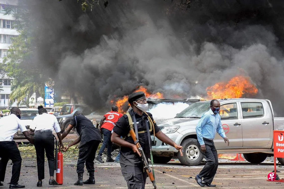 (早报讯)乌干达首都坎帕拉的中心地带周二(11月16日)发生两起自杀式炸弹袭击,造成六人丧生、33人受伤。