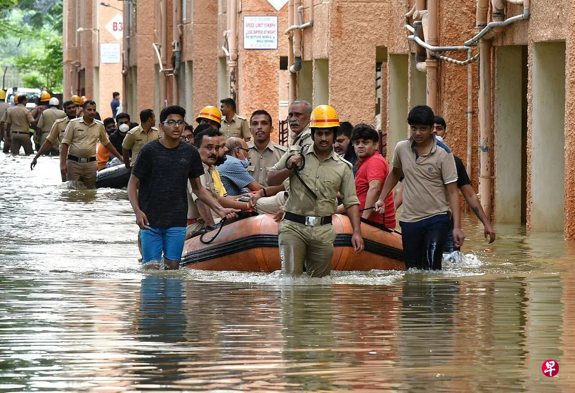 在卡纳塔克邦首府本加卢鲁(班加罗尔)和泰米尔纳德邦首府金奈这两座南部经济重镇,多个街区发生内涝。