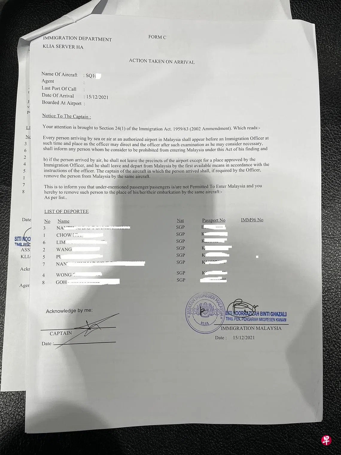 (早报讯)八名新加坡公民原本准备透过新加坡与马来西亚的航空疫苗接种者旅游走廊计划(VTL)入境马国,但他们没有注意相关条例已经更新而没在出发前上载相关文件,结果到了吉隆坡国际机场遭马国移民局禁止入境而必须回返新加坡。