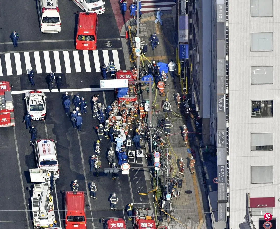 (早报讯)日本《读卖新闻》报道,周五(17日)早上一名年长男性带着一个漏出易燃液体的袋子进入大阪市位于北区曾根崎新地1丁目的一幢八层楼建筑,易燃液体过后被点燃,引发了火患。