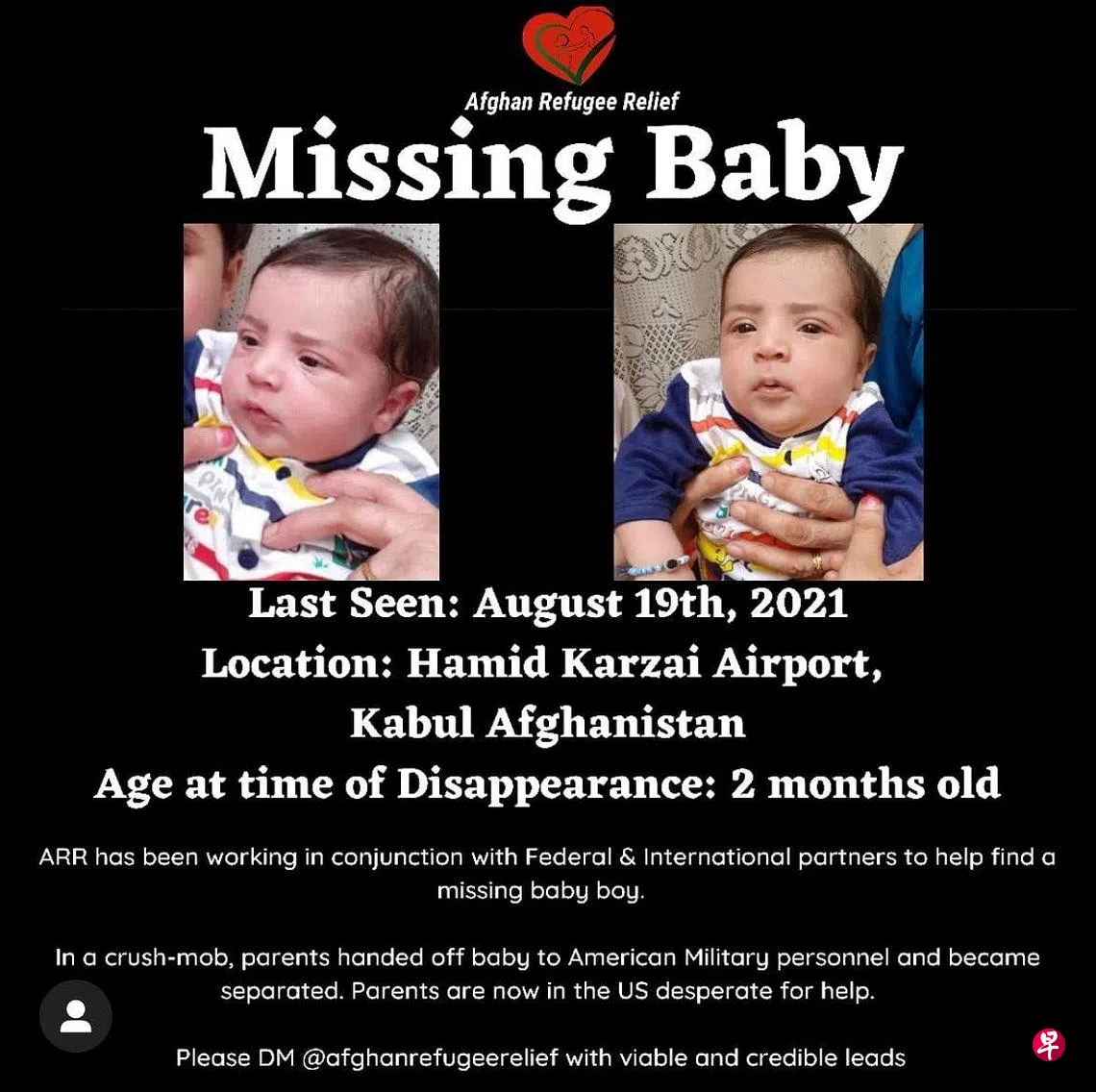 (早报讯)阿富汗一对夫妇去年8月在喀布尔机场急着撤离时,把两个月大的儿子举高交给美军,没想到之后竟失散。经过五个月,他们终于找到孩子了。