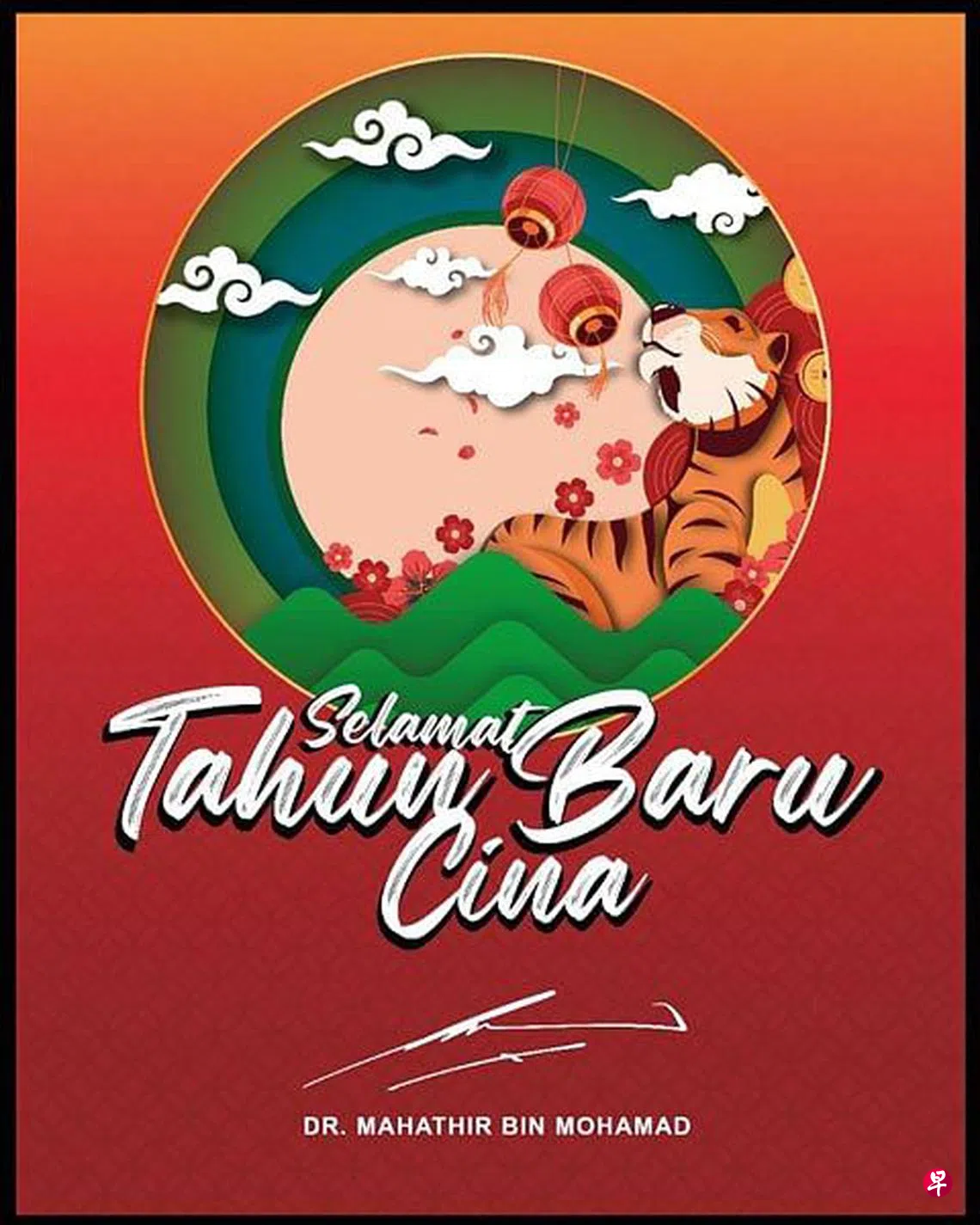 (早报讯)马来西亚前首相马哈迪祝全体华裔同胞,新年快乐!