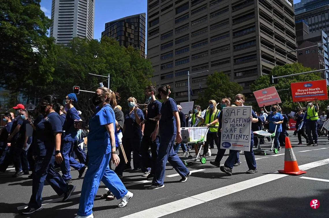 (早报讯)澳大利亚新南威尔士州的护士为人手短缺和薪资问题与政府谈判失败,于周二(2月15日)举行24小时罢工行动。