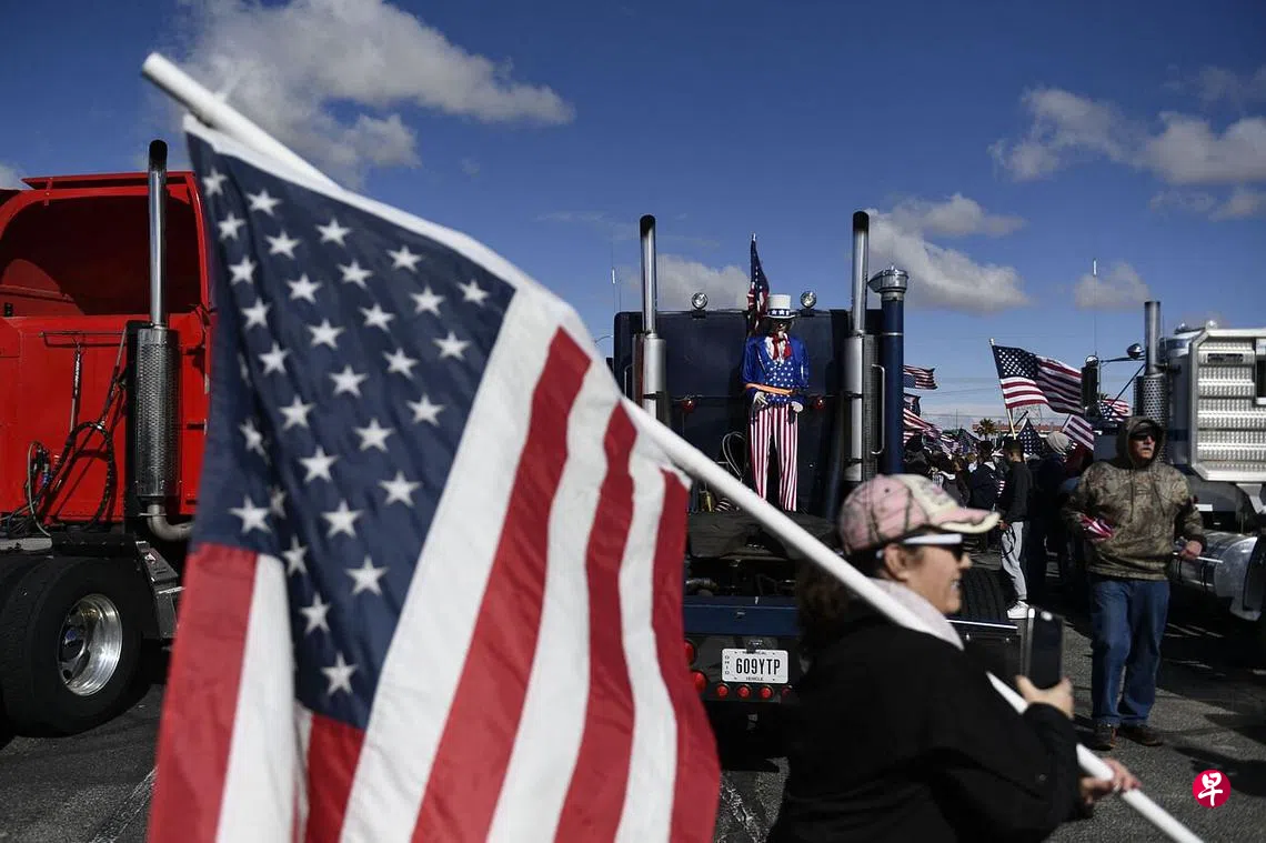 (早报讯)美国数以百计的卡车司机周三(2月23日)从加利福尼亚州出发,准备到华盛顿抗议防疫限制措施。