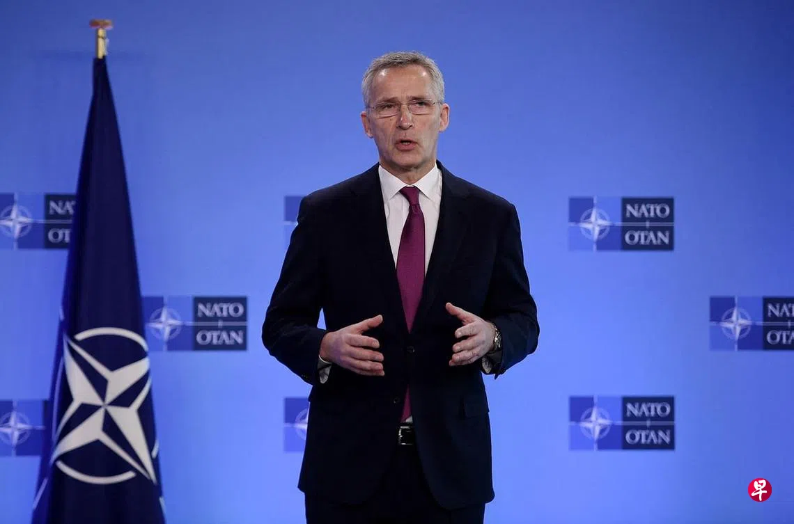 斯托尔滕贝格说,北约当前的首要任务是保卫北约成员国的安全。他呼吁通过外交途径解决冲突。