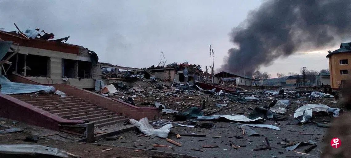 (早报讯)俄罗斯国防部说,俄军星期天(3月13日)对乌克兰西部边境、靠近波兰一大型军事基地进行的空袭,摧毁了存放在该庞大训练设施里的大量外国提供的武器,并歼灭了“多达180名外国雇佣军”。
