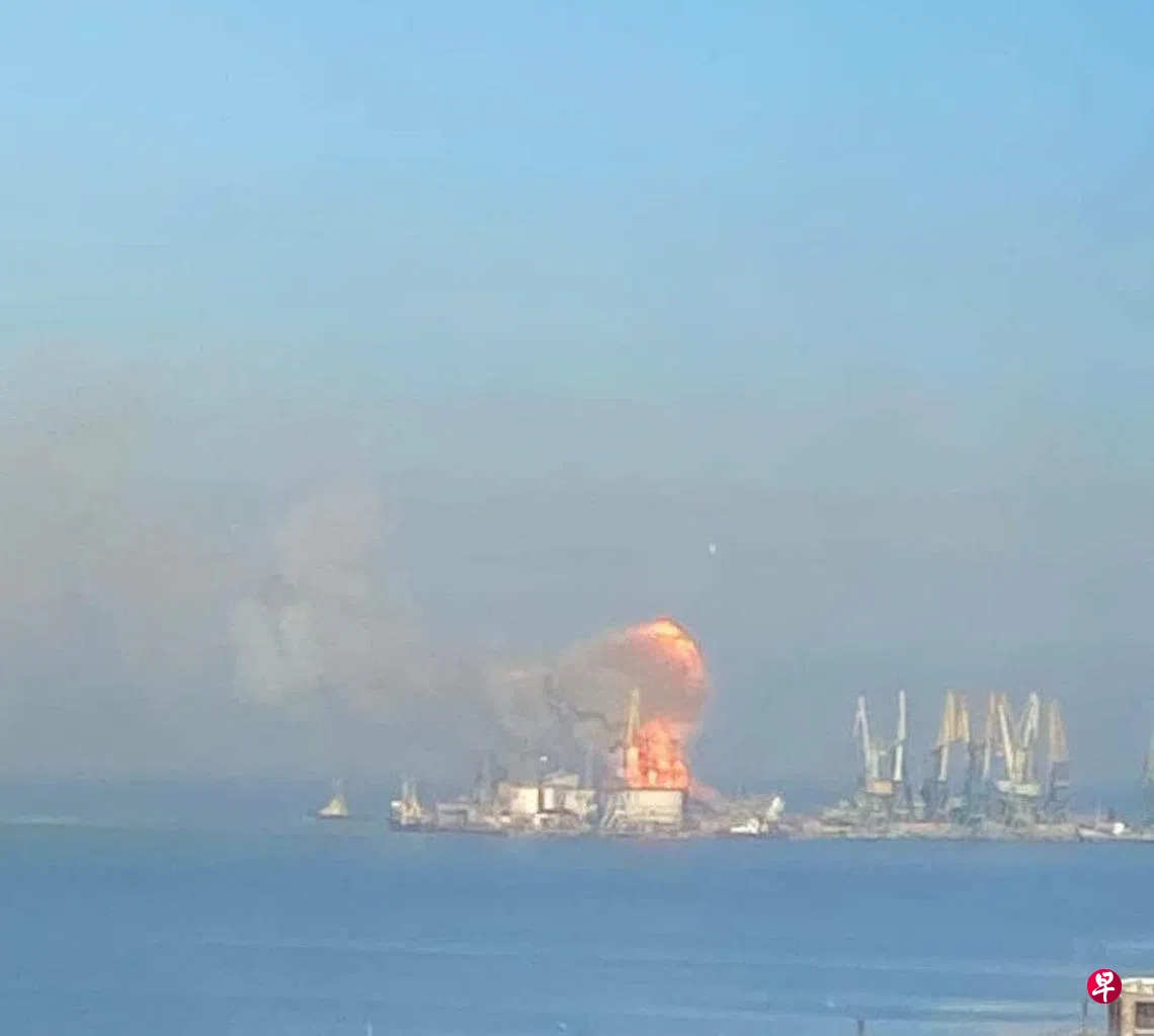 (早报讯)乌克兰宣称,已摧毁一艘停靠在别尔江斯克港的俄罗斯海军运输船。