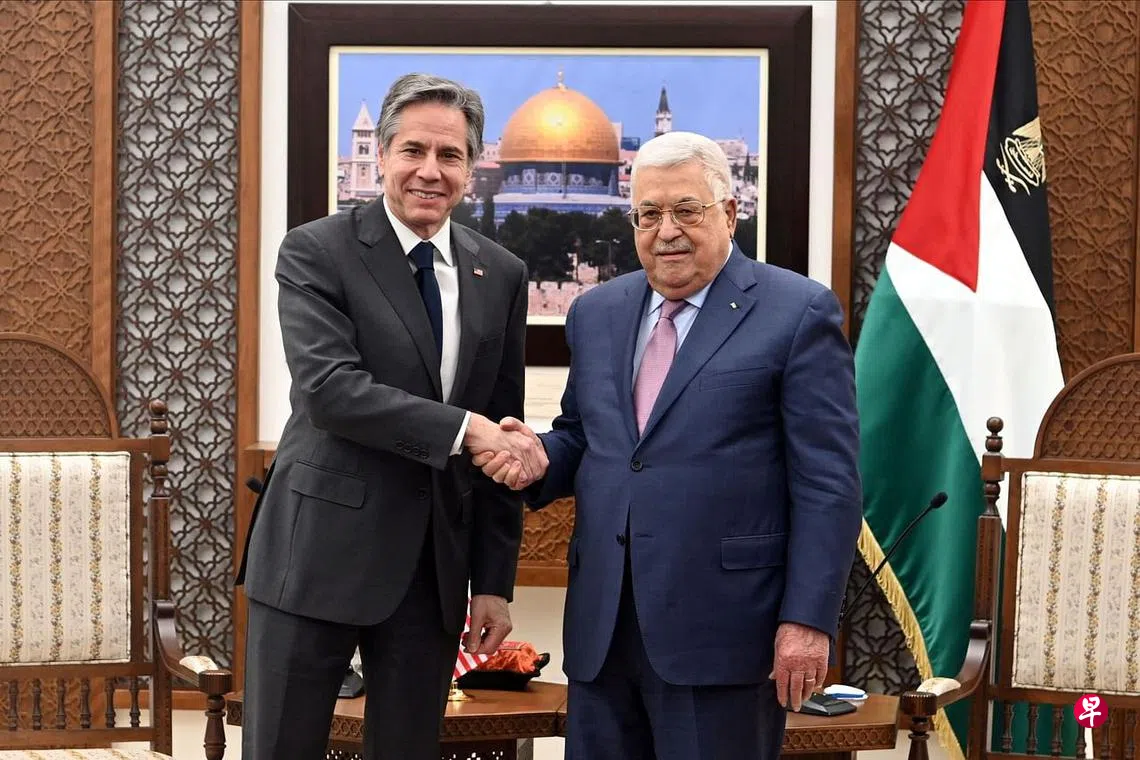 (早报讯)巴勒斯坦总统阿巴斯星期天(3月27日)晚上在约旦河西岸城市拉姆安拉会见到访的美国国务卿布林肯。