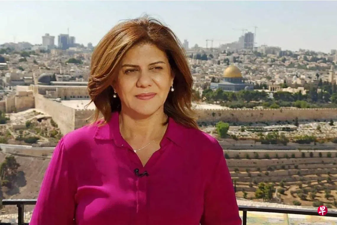 综合外电报道,遭到射杀的半岛电视台女记者是51岁的希琳·阿布·阿克利赫(Shireen Abu Aqleh)。据报道,希琳是巴勒斯坦人,事发时她的头部中弹,送院后不治。当时她穿着写有“媒体”字样的背心。