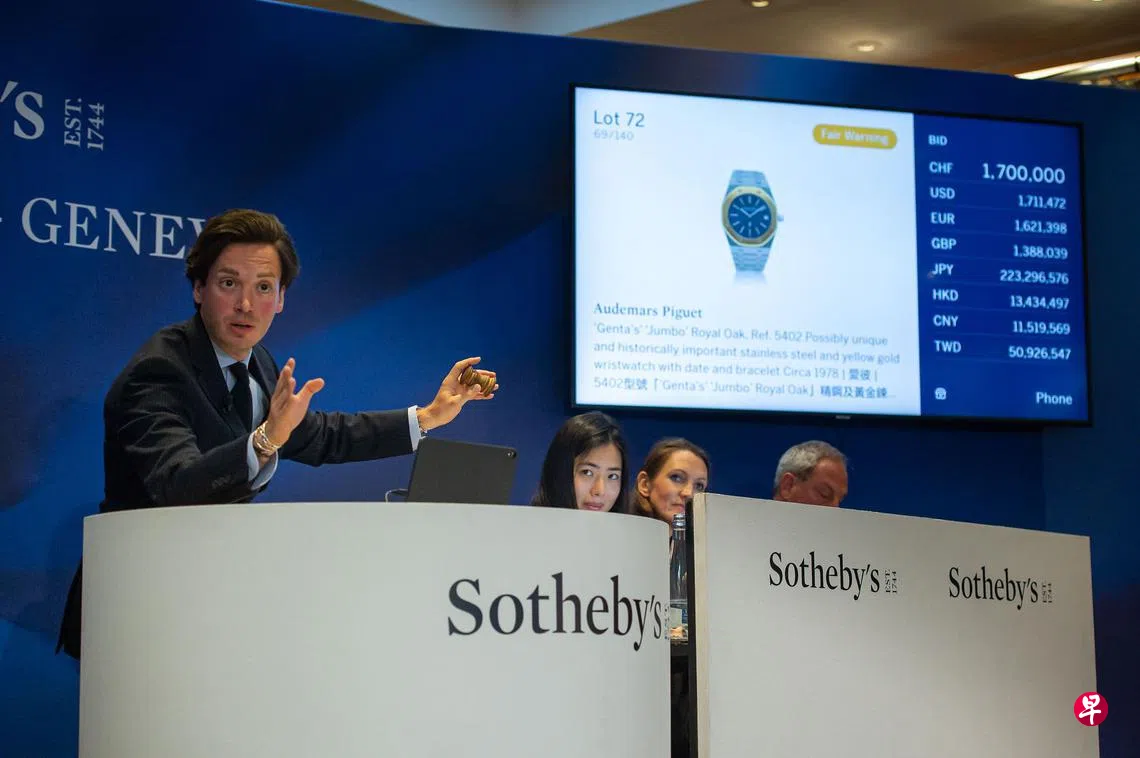 (早报讯)名表界最受瞩目的古典名表之一,由世界上最具影响力的手表设计师尊达(Gérald Genta)私人收藏的古董爱彼(Audemars Piguet)皇家橡树型腕表(Royal Oak),昨天(5月10日)刚在苏富比(Sotheby’s)日内瓦拍卖会上,以210万7000瑞士法郎(约296万3392新元)的刷新世界纪录价格售出。