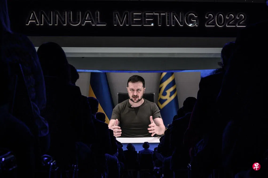 泽连斯基周一(5月23日)通过视频方式出席了正在瑞士达沃斯举行的世界经济论坛。他在发言时要求国际社会进一步制裁俄罗斯,包括石油禁运、封锁俄罗斯所有银行、将外国投资完全撤出俄罗斯,以及完全切断与俄罗斯的贸易。