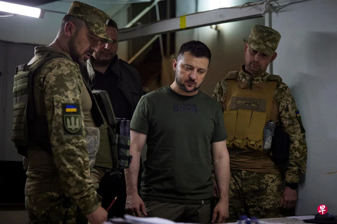 (早报讯)乌克兰总统办公室周一(6月6日)发布了总统泽连斯基视察卢甘斯克地区西部城市利西昌斯克前线的视频。