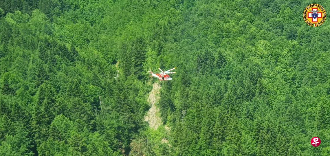 一名救援人员在意大利空军推特账户上发布的一段视频中说:“我们取得坐标,去了现场,发现所有东西都烧毁了。这架直升机坠落于山谷内,靠近一道溪流。”
