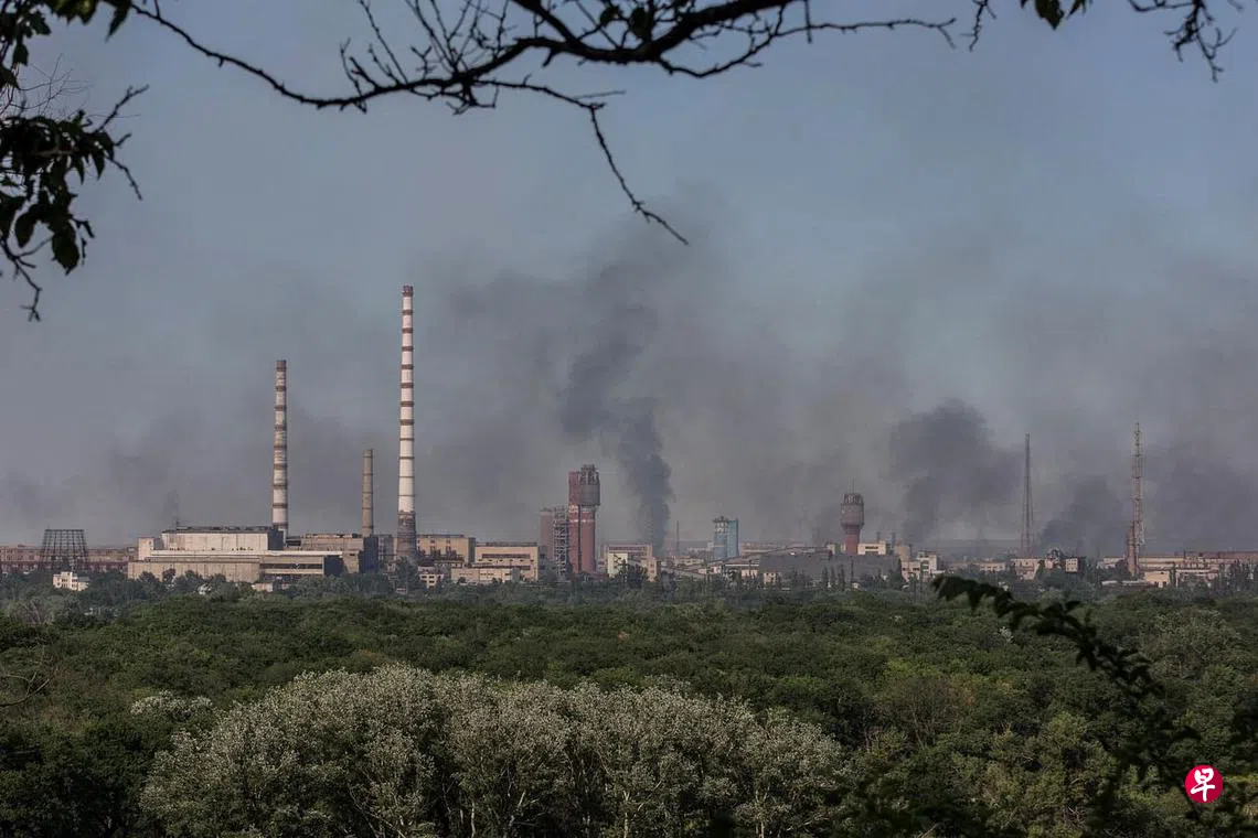 (早报讯)乌克兰东部卢甘斯克州长盖代周六(6月11日)说,俄罗斯炮轰乌克兰前线城市乌东北顿涅茨克的阿佐特化工厂(Azot),造成数吨燃油外漏后引发猛烈大火。