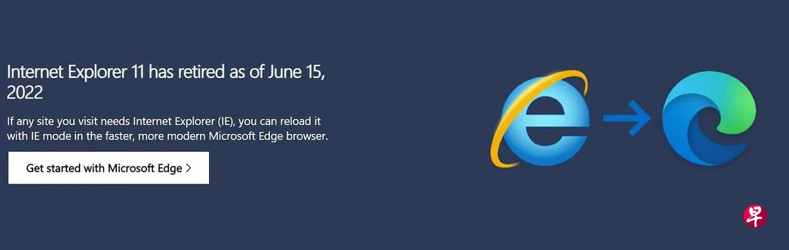 (早报讯)微软IE(Internet Explorer)浏览器因速度缓慢,不再适用于或兼容许多现代网络任务,而且远不如现代浏览器安全,已于星期三(6月15日)正式终止服务。