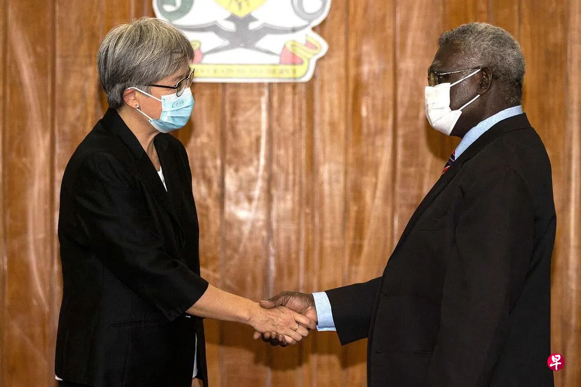 (早报讯)澳大利亚外长黄英贤周五(6月17日)与所罗门群岛总理索加瓦雷会面,所罗门群岛重申不会让中国在当地设立军事基地。