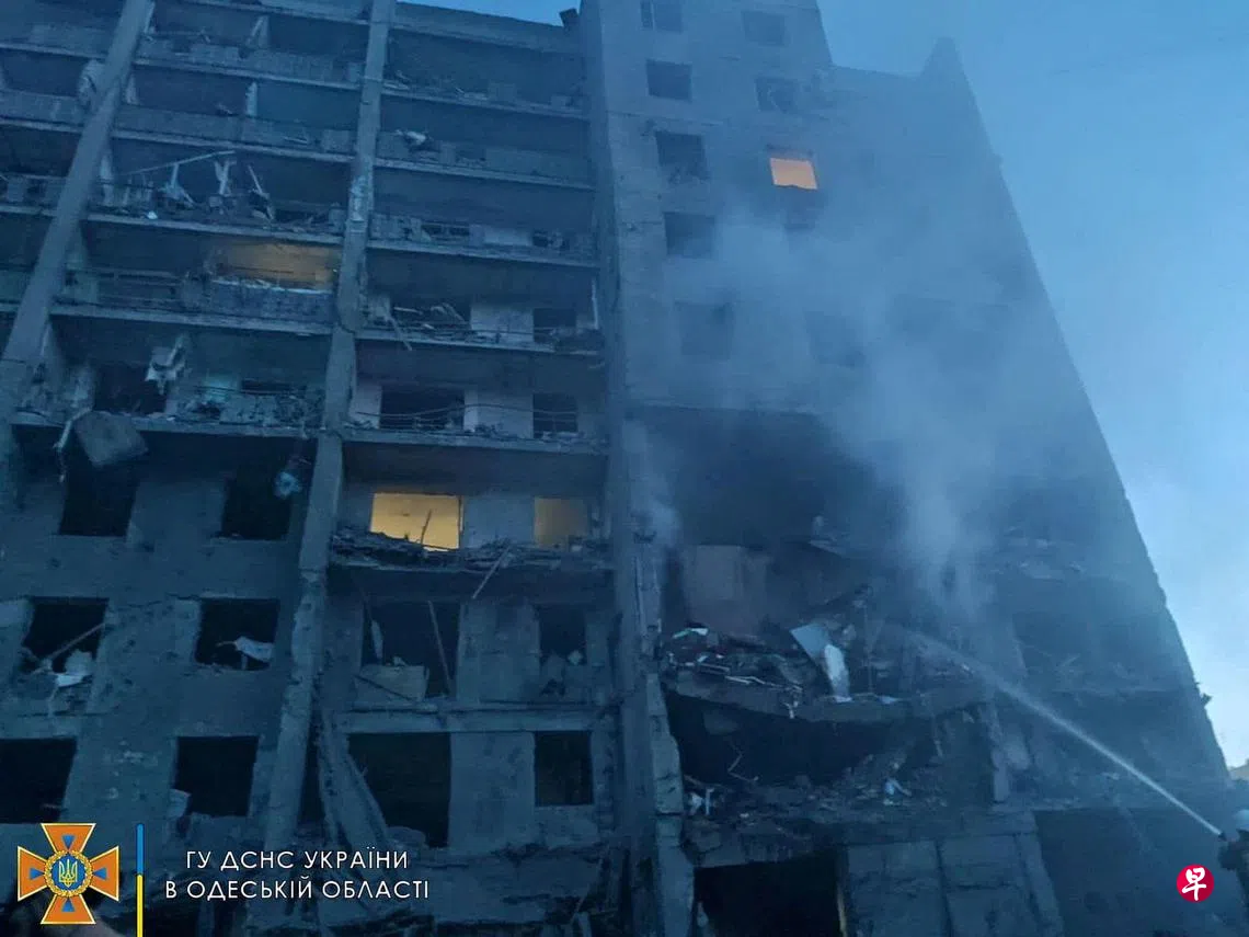 (早报讯)俄罗斯星期五(7月1日)在乌克兰黑海港口敖德萨(Odesa)附近发射导弹,击中一栋公寓大楼和一个度假村,造成至少19人死亡。