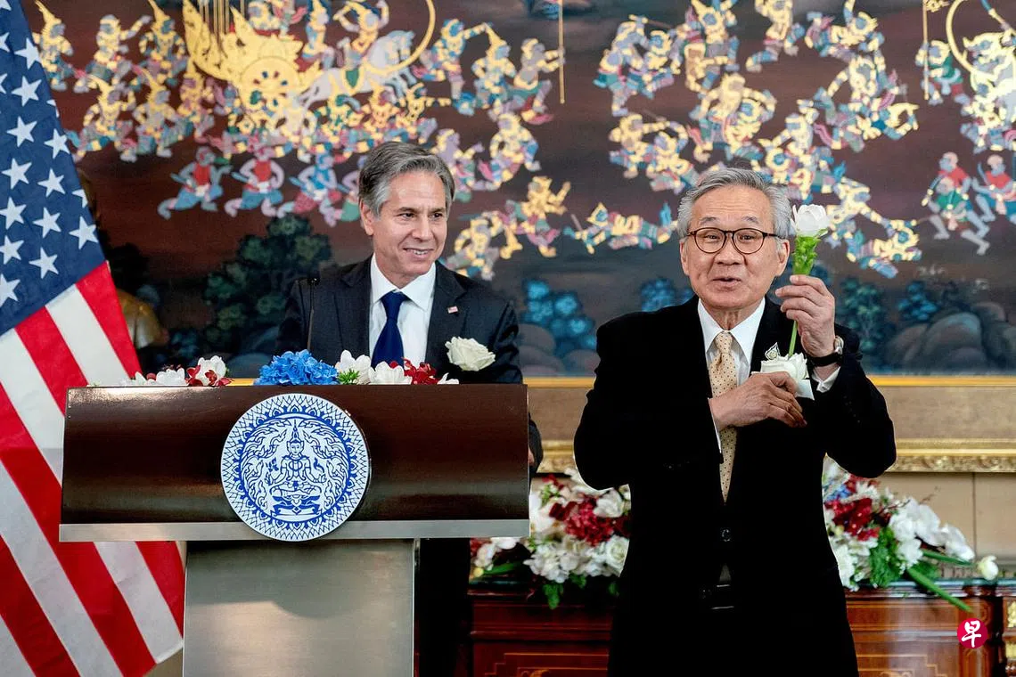 综合外电报道,正在泰国访问的美国国务卿布林肯和泰国外交部长帕马威奈会面,两人誓言推进美泰在气候变化、执法和安全合作方面的伙伴关系。