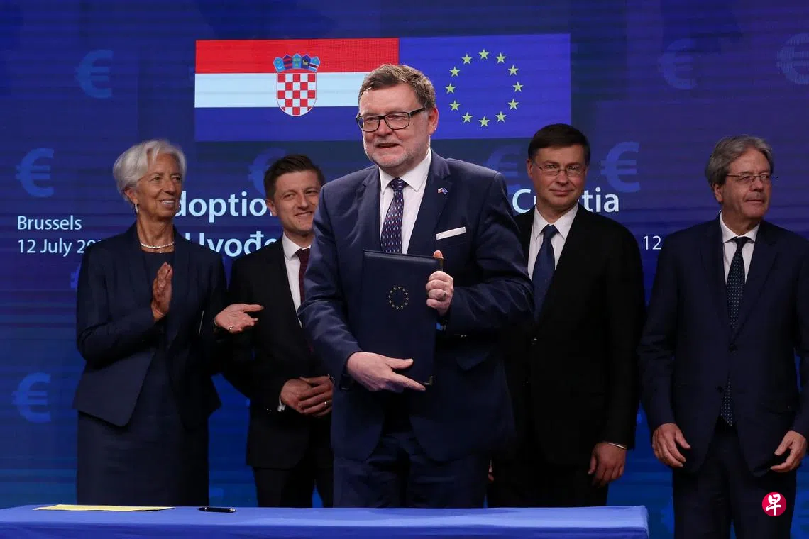 彭博社报道,欧盟财长星期二(7月12日)在布鲁塞尔举行了签字仪式,克罗地亚财政部长兹德拉夫科·马里奇代表国家签字。作为欧盟的执行机构,欧洲委员会之前曾建议允许这个人口390万人的国家采用欧元,认为它符合通货膨胀和公共债务等必要条件。