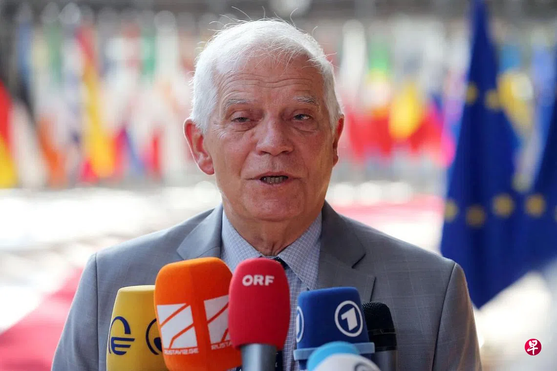博雷尔星期一(7月18日)抵达布鲁塞尔参加欧盟外交部长会议前接受记者采访。这场会议将讨论如何弥补对俄制裁的漏洞。