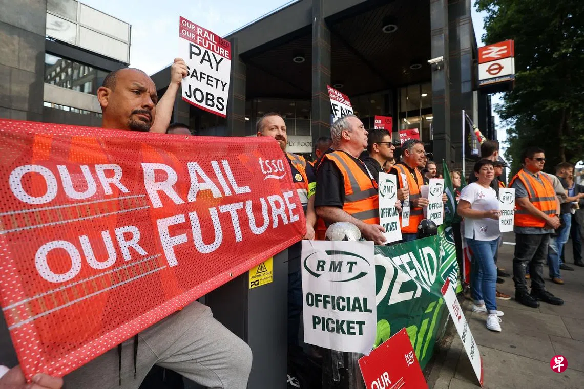 (早报讯)英国铁路员工星期三(7月27日)因薪酬和工作条件问题再次举行罢工,约一半铁路网络中断。这是英国员工在工资未能跟上通货膨胀步伐所引发的最新一轮罢工行动。