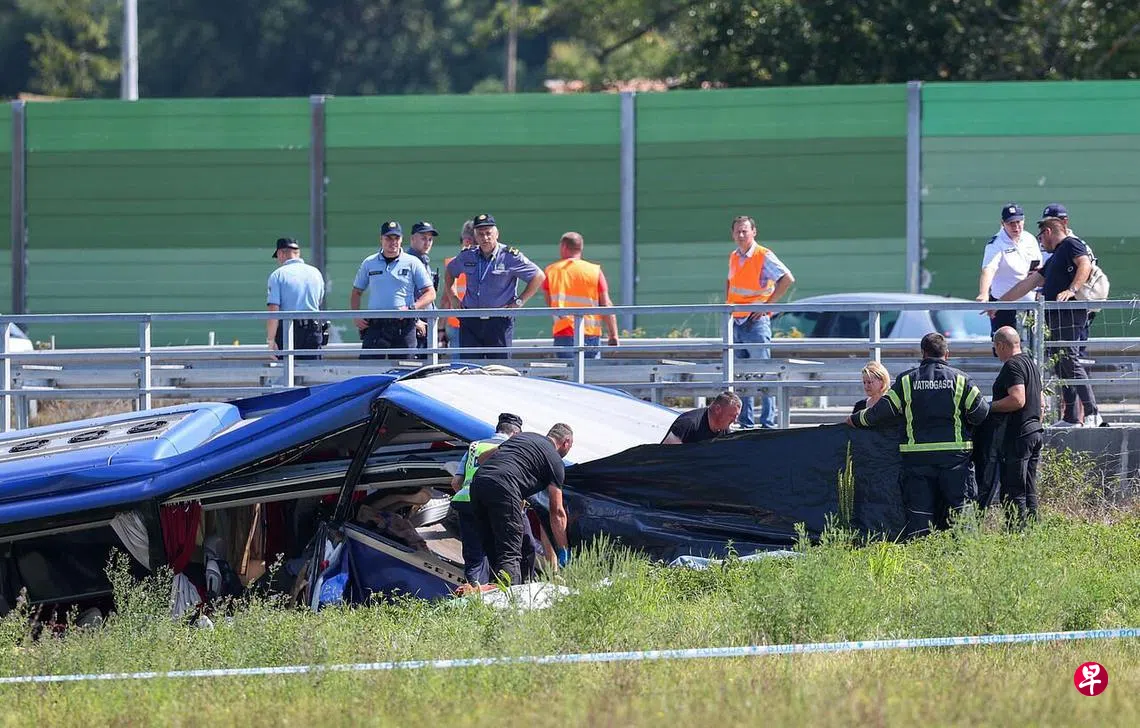 (早报讯)一辆波兰巴士星期六(8月6日)在克罗地亚西北部冲出快速公路,造成12人死,31人受伤。