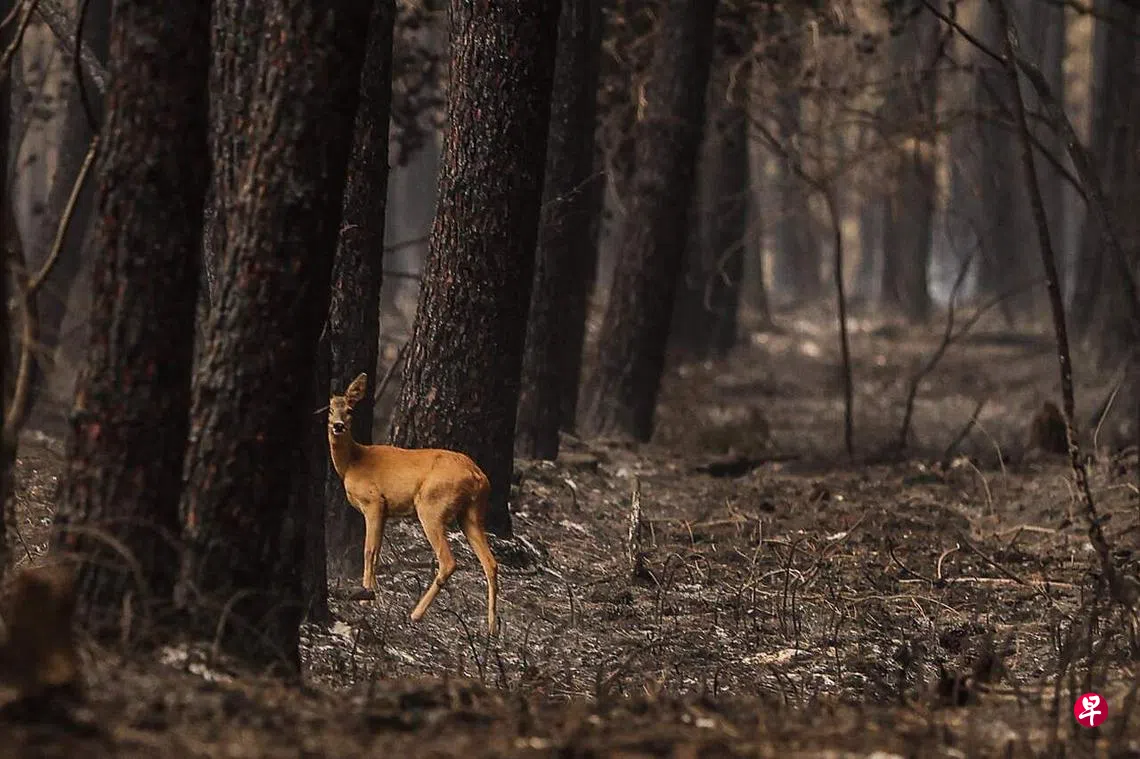 法国目前正处于今年第四波热浪,西南地区多处野火不断,本该碧绿的森林在炽焰中成为焦土。