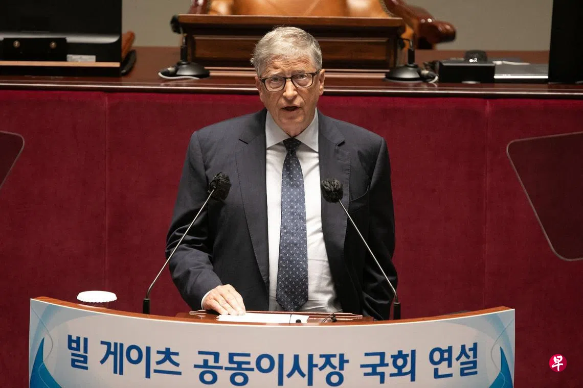 韩联社报道,比尔盖茨星期二(8月16日)在韩国国会以应对冠病等传染病与国际合作为主题发表讲话。