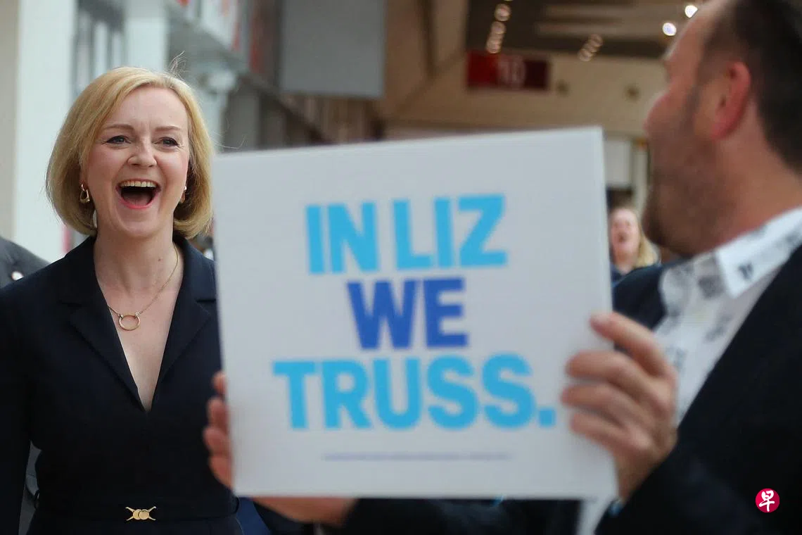 特拉斯当选英国下一任首相英国现任外交大臣特拉斯9月5日在保守党党魁竞选中胜选,成为新一任英国首相。(法新社)(早报讯)英国现任外交部长特拉斯星期一(9月5日)击败了原财政大臣苏纳克,成为新一任英国首相。 英国首相特拉斯上一篇巫统“现金王”阿都阿兹要求撤销所有13项控状 遭上诉庭驳回下一篇特拉斯以57%得票率当选保守党党魁 成为英国下一任首相购买此文章