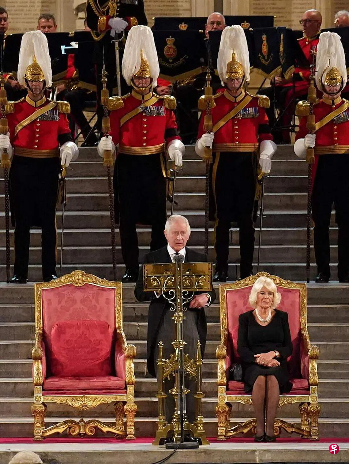查尔斯星期一(9月12日)在国会大厦接受国会吊唁动议后,首次以国王身份向国会议员发表讲话。他说:“我今天站在你们面前,不禁感受到历史的沉重,让我们想起两院议员为改善国家所作出的个人承诺,让我们想起重要的议会传统……议会是我们非常重要的民主工具。”
