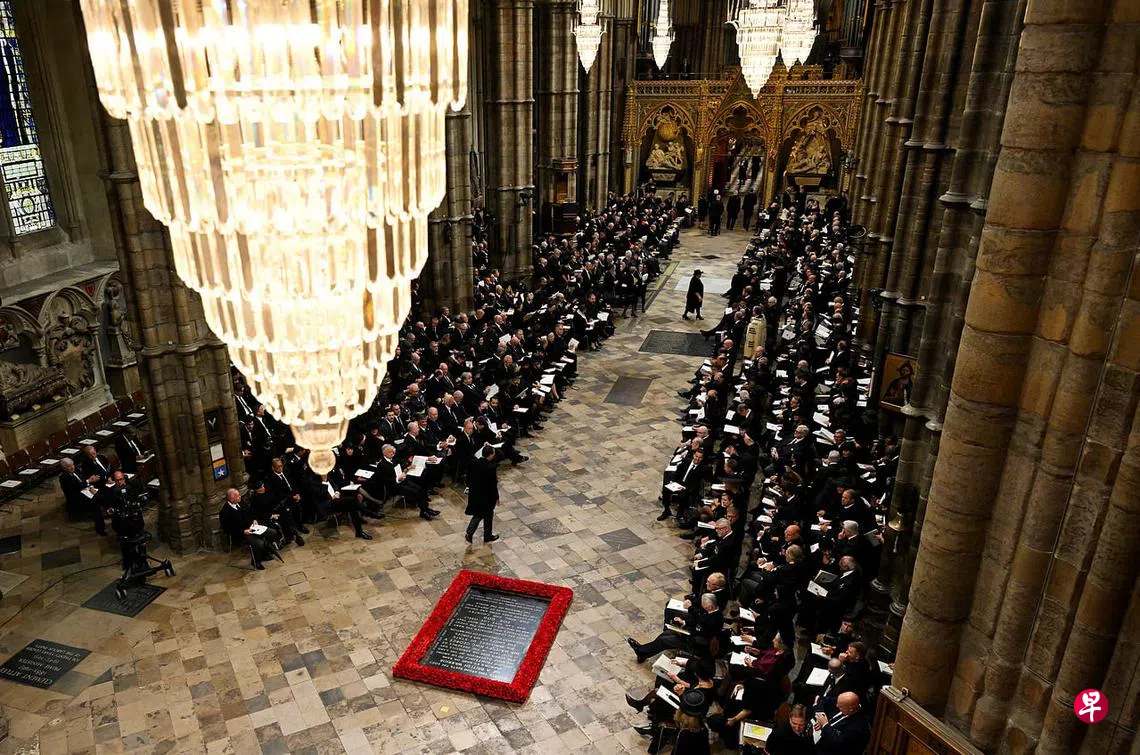 (早报讯)目前离女王国葬仪式还有大约两个小时,受邀出席国葬的约2000名贵宾已陆续抵达伦敦市中心的威斯敏斯特教堂。