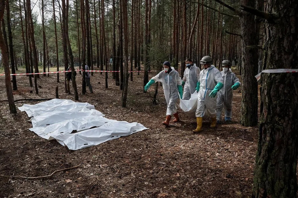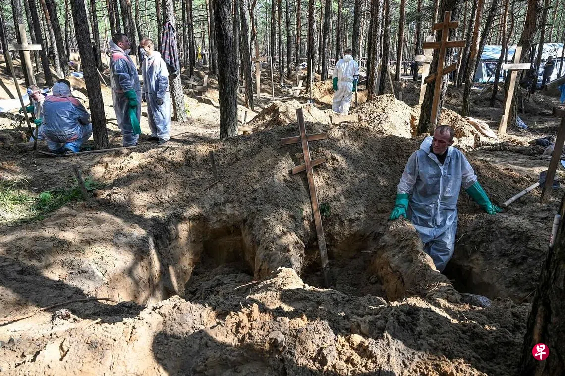 9月15日,乌军在刚夺回的乌东城市伊久姆(Izyum)一处林地发现乱葬岗。乌克兰总统泽连斯基指责俄军犯下战争罪。