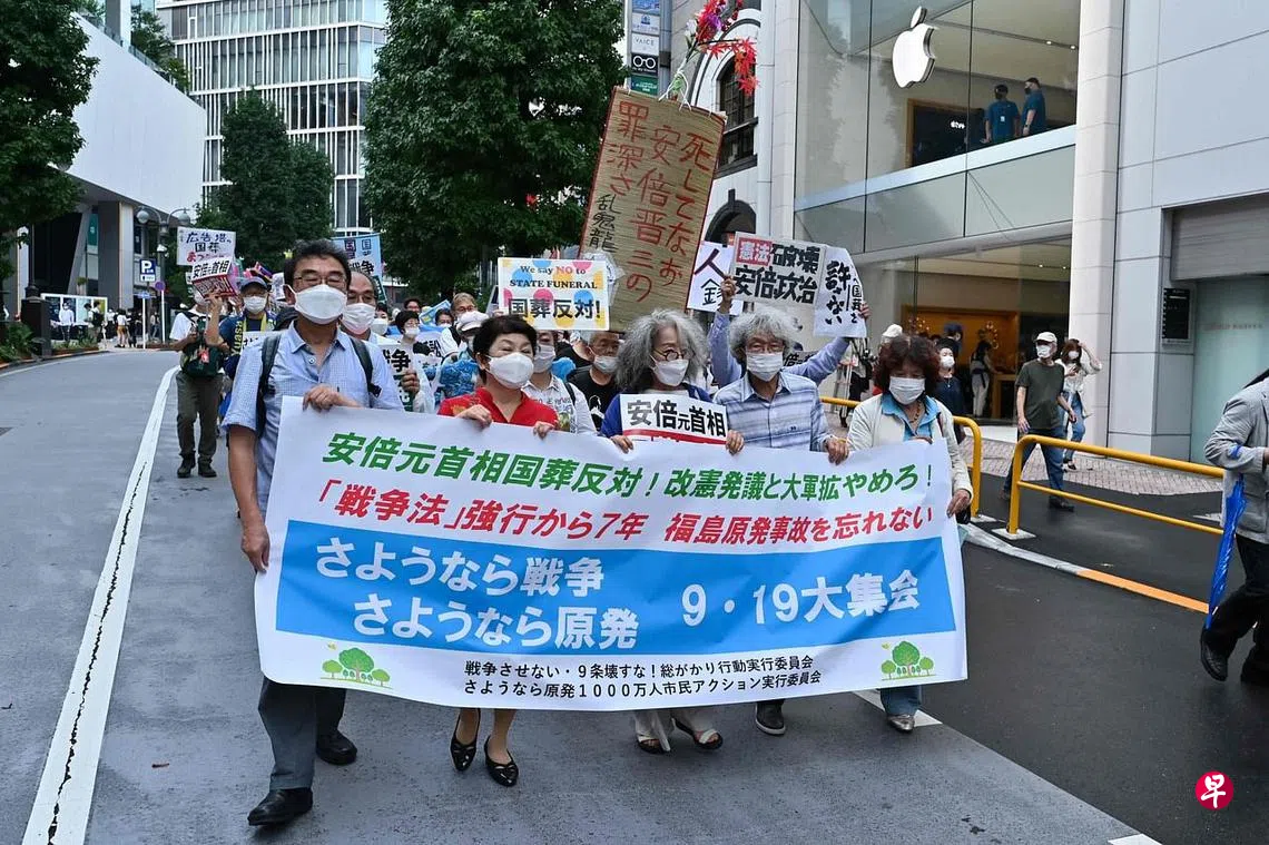 (早报讯)日本上万名民众星期一(9月19日)聚集在东京代代木公园,反对为已故前首相安倍晋三举行国葬。