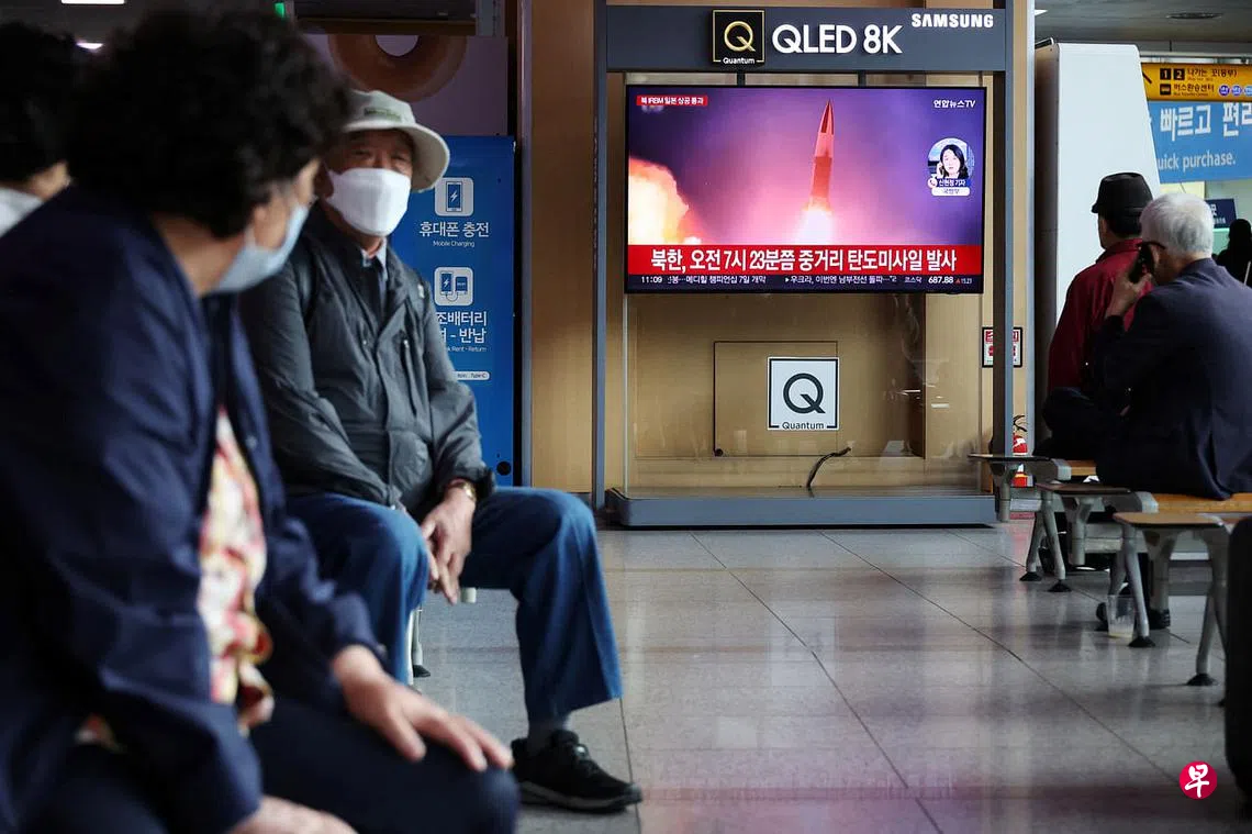 (早报讯)韩国联合参谋本部说,朝鲜于当地时间星期二(10月4日)早上7时23分许(新加坡时间4日早上6时23分许),从慈江道舞坪里地区向东发射一枚中远程弹道导弹,导弹射程达4500多公里,越过日本列岛上空。