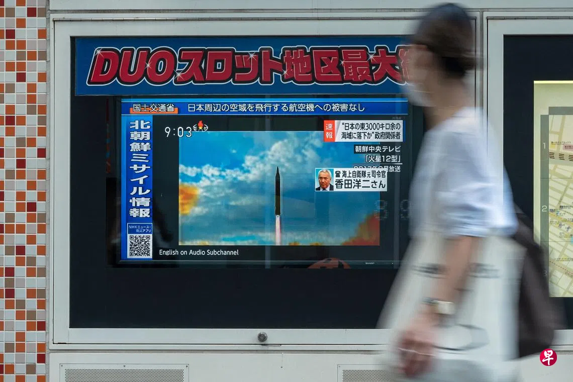 朝鲜在4日上午7时23分许,从慈江道舞坪里地区向东发射一枚中远程弹道导弹(IRBM),导弹射程达4500多公里,越过日本上空。