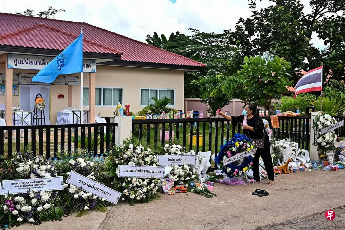 34岁的前泰国警员潘亚6日中午持刀枪闯入农磨兰普府乌泰沙旺镇一家托儿所杀人,随即回到家里杀死妻儿后吞枪自尽。