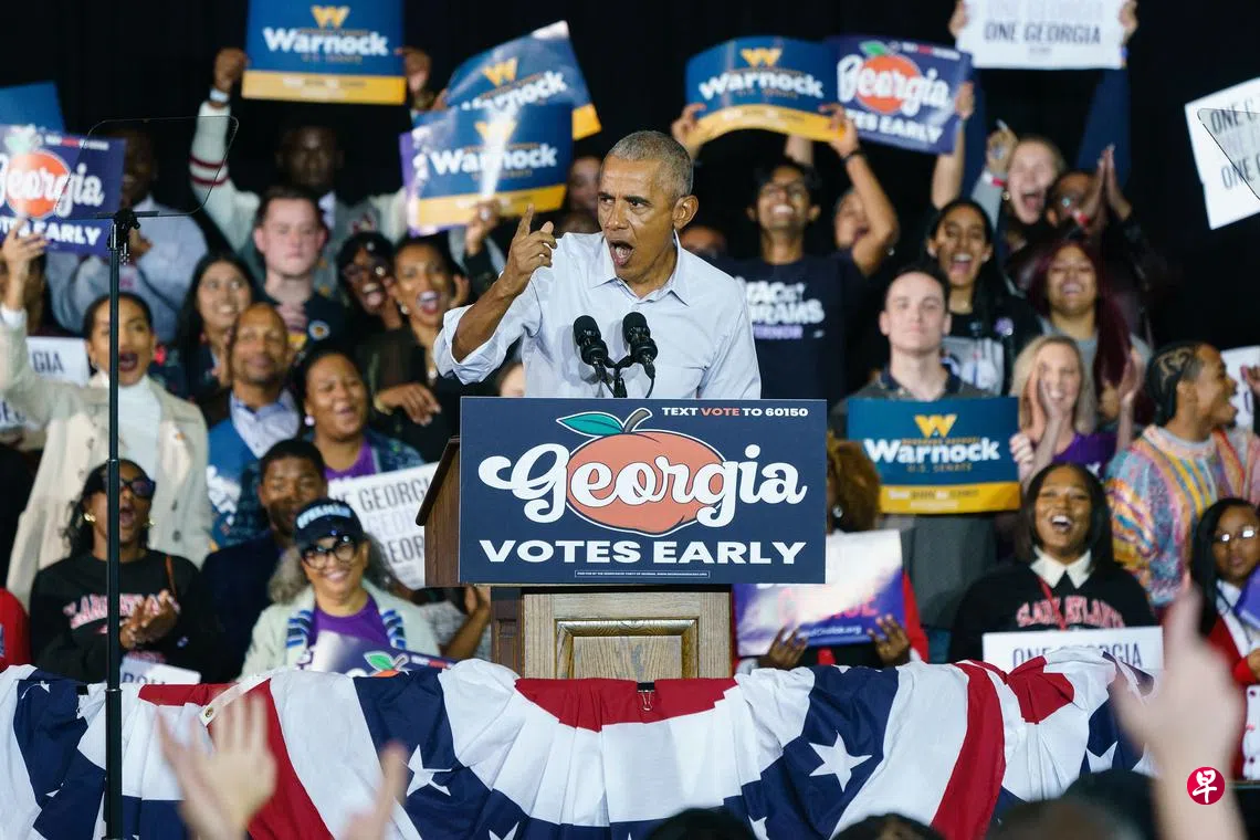 (早报讯)美国民主党籍前总统奥巴马星期五(10月28日)到佐治亚州协助民主党籍参议员催票,希望协助民主党守住对参议院的控制权。