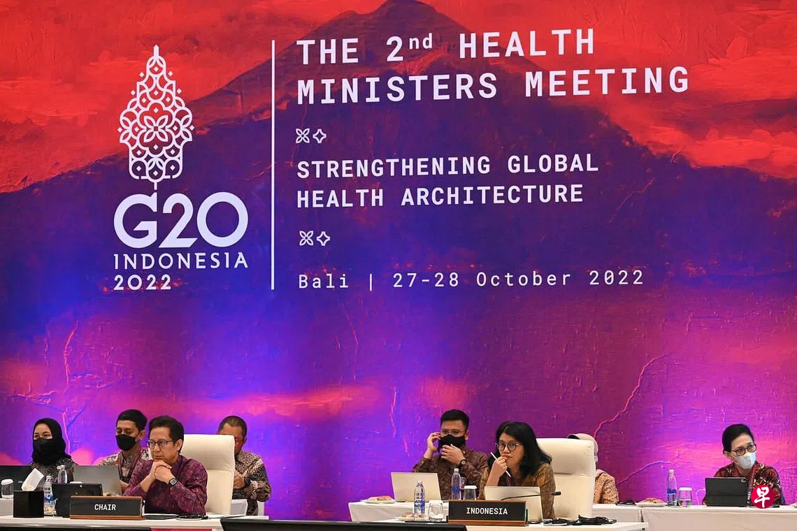 《海峡时报》报道,印度尼西亚卫生部长布迪星期六(10月29日)在峇厘岛举行的记者会上说,全球地缘政治持续紧张,乌克兰冲突仍未平息,全球最强的两大对手竞争加剧,尽管如此,G20的卫生部长和专家还是决定朝着“防堵大流行”(pandemic-proof)的方向迈进。