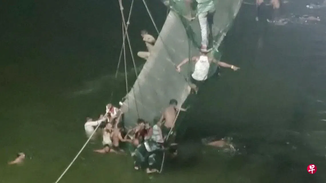 (早报讯)印度西部古吉拉特邦一座拉索桥星期天(10月30日)突然断裂,已造成至少81人死亡、数十人受伤。