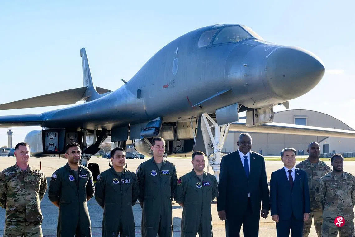 (早报讯)韩美国防部长商定,两国将在必要时,经协商在韩半岛适时出动美国的战略武器,应对来自朝鲜的核威胁,并将继续采取新措施加强对朝遏制力。