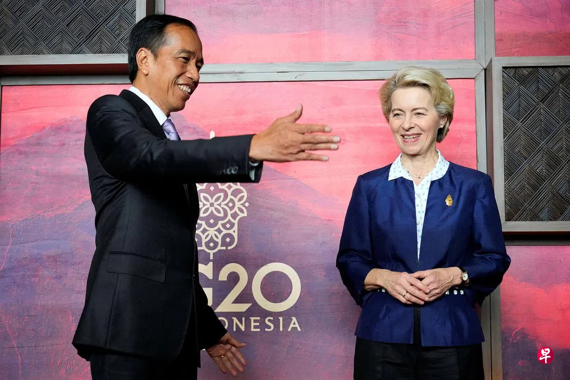 (早报讯)印度尼西亚总统佐科星期一(11月14日)与欧盟委员会主席冯德莱恩会晤时,呼吁欧盟委员会和七国集团(G7)在实现二十国集团(G20)峰会声明方面,提供支持与灵活性。
