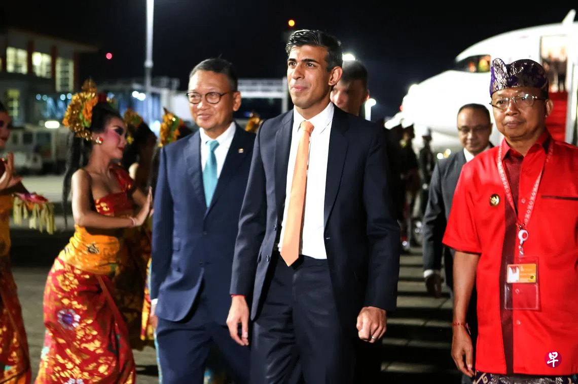 苏纳克星期一(14日)抵达峇厘岛,预料下来会与俄罗斯外交部长拉夫罗夫会面。