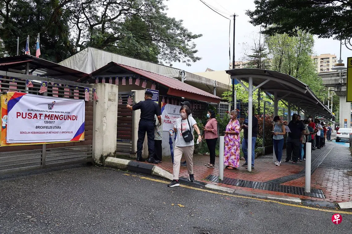 (早报讯)星期六(11月19日)是马来西亚全国大选投票日,不到早上8时,就有近30人的队伍在吉隆坡十五碑卫理女子小学外排队,准备进入设在学校内的投票站投票。