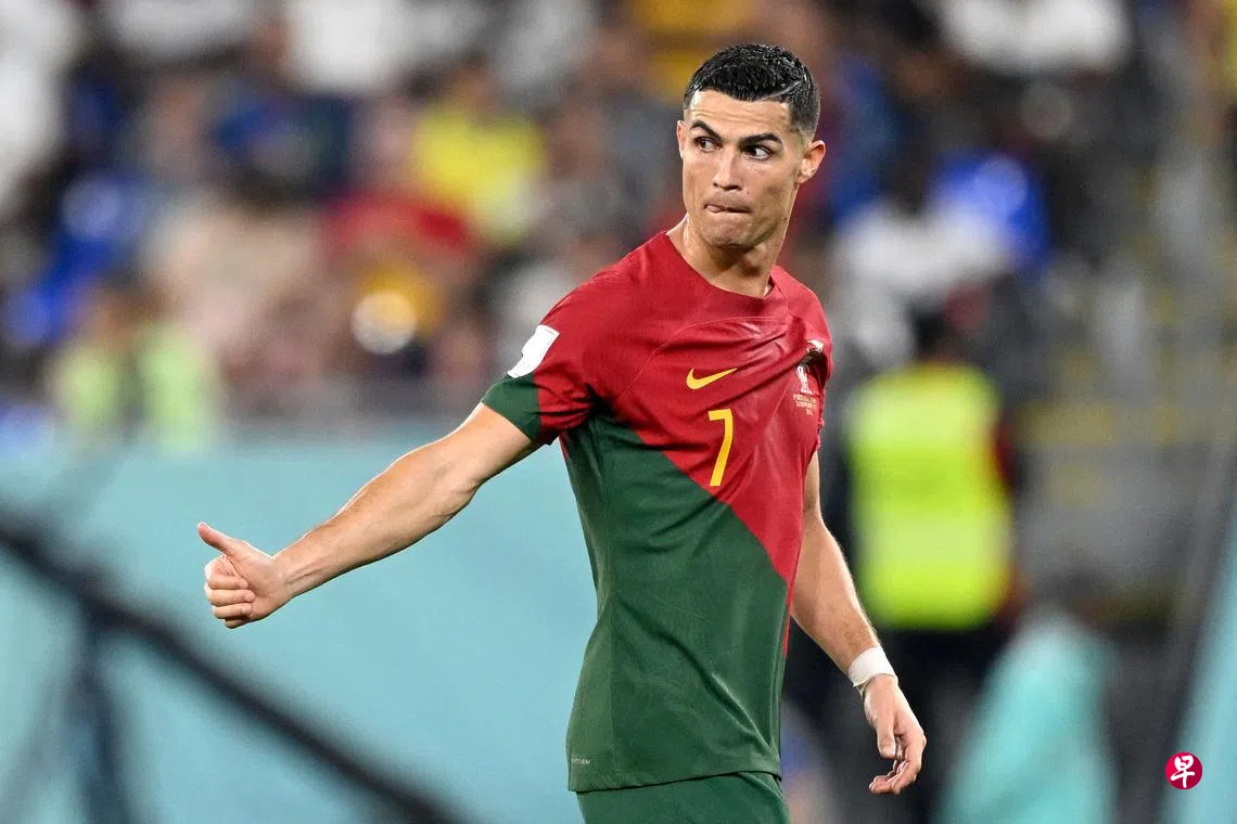 最近因上访谈节目抨击曼联(Man Utd),最终迫使曼联与其解除合约而成为媒体焦点的葡萄牙球星“帅罗”克·罗纳尔多(C.Ronaldo)也在今晨登场,并在第65分钟以罚球为葡萄牙首开纪录,成为连续五届世界杯进球第一人。